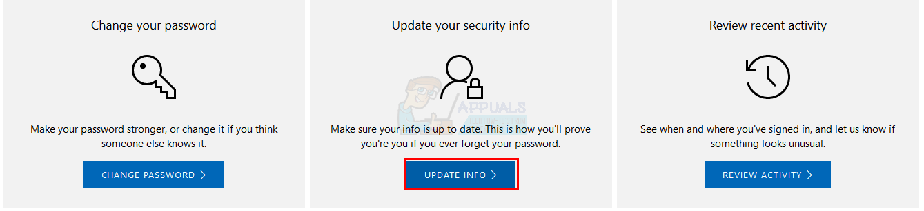 - Выбрать Обновить данные в разделе под названием Обновите информацию о безопасности. Возможно, вам придется ввести свой пароль