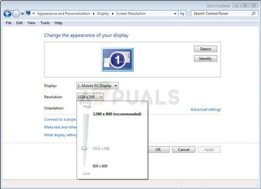 - После запуска ПК щелкните правой кнопкой мыши на рабочем столе и выберите «Свойства». Перейдите на вкладку «Настройки» и настройте вкладку «Разрешение». Попробуйте незначительно понизить настройку и перезагрузите компьютер в обычном режиме, чтобы увидеть, решена ли проблема.