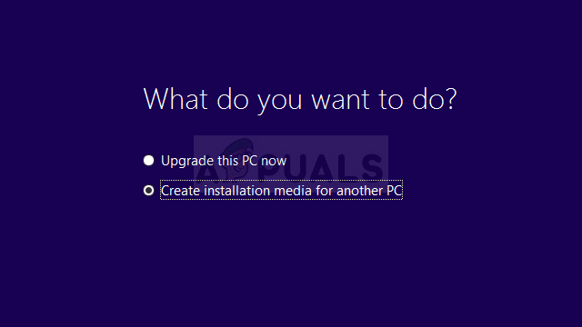 - Выберите «Создать установочный носитель» (USB-накопитель, DVD-диск или файл ISO) для другого варианта ПК на первом экране, отображаемом из инструмента.