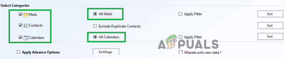 Выбор «Категории», установив флажки - Проверьте коробки для «категории», Который вы хотите импортировать и проверьте«исключать дублировать контактыКоробка.