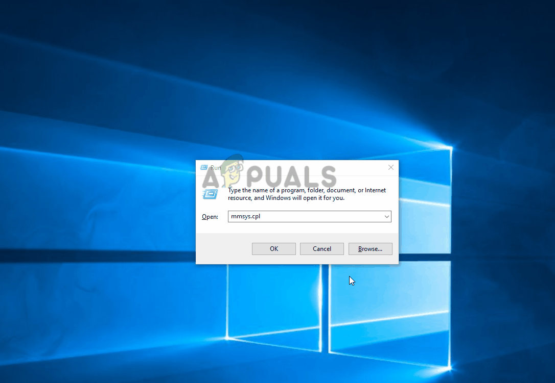 - Нажмите Windows ключ + R открыть диалоговое окно запуска. Затем введите mmsys.cpl» и нажмите Войти открыть звук окно. Если вас попросят UAC (контроль учетных записей пользователей), нажмите на да предоставить доступ администратора.