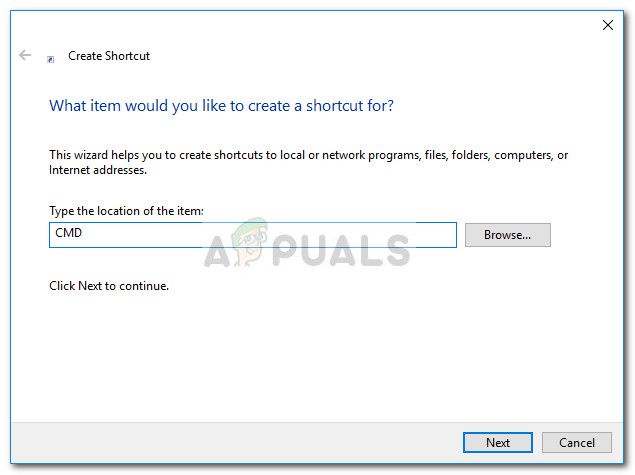 - В коробке прямо под надписьюВведите местоположение предмета» тип » CMD И ударил следующий кнопка.