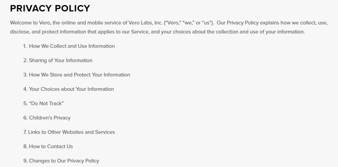 Политика конфиденциальности Vero не преподносит сюрпризов. Они используют файлы cookie, хранят ваши данные в нескольких странах и будут делиться вашими данными внутри компании и со своими поставщиками услуг. В соответствии с их позицией без рекламы, нет упоминания о договоренностях по обмену данными с рекламодателями.
