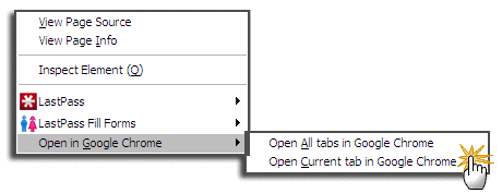 Что-то подсказывает мне, что если вы не веб-дизайнер, это дополнение, к которому вы собираетесь подключиться. Просто потому, что Open in Chrome берет только одну или все открытые вкладки в Firefox и открывает их в Chrome. Похоже, это лучший способ перенести все ваши вкладки Firefox в Chrome и активизировать браузер, когда он замедляется из-за слишком большого количества вкладок. Опять же, доверие к факту, что Chrome лучше обрабатывает несколько вкладок, чем Firefox.