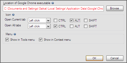 Опции надстройки предоставляют вам параметры конфигурации для настройки порядка браузеров, а также того, как вы хотите, чтобы функции добавлялись в меню и панели вкладок для открытия текущей страницы в Chrome.