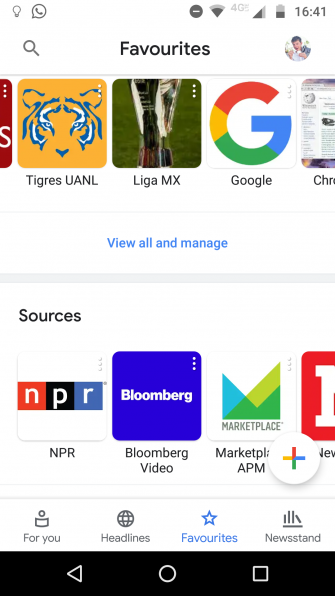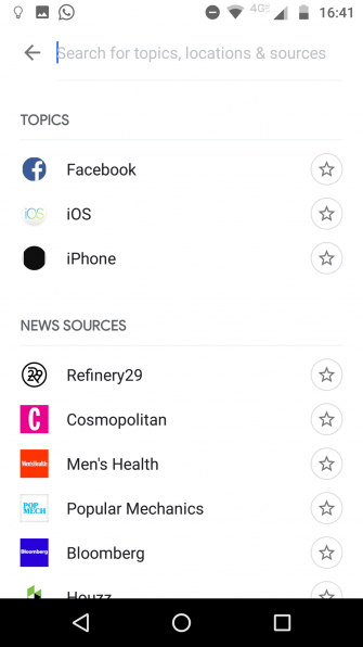 Теоретически вкладки разделов в верхней части экрана должны совпадать с любыми настройками, выполненными в версии веб-приложения Новостей Google.
