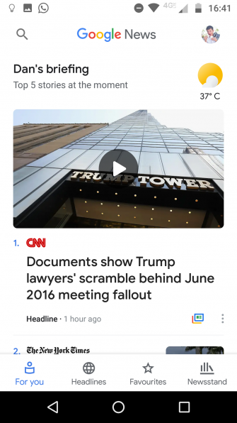 Для тебя раздел — это экран приветствия по умолчанию, который вы будете видеть каждый раз, когда открываете новое приложение Новостей Google.