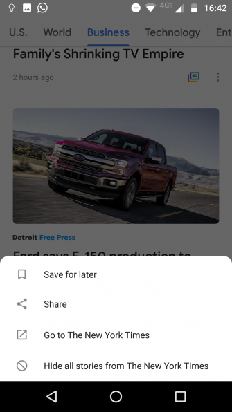 Для каждой истории, которую вы видите, вы можете указать Google News, показывать ли вам более или менее контент в том же духе. Вы также можете предотвратить появление определенной публикации в вашем фиде.
