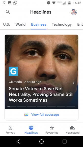 В отличие от Вас, Новости Google не настраивают раздел Заголовки контента в соответствии с вашими интересами. Вместо этого, он предлагает все главные истории дня