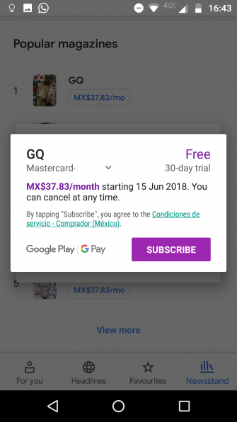 При выборе подписки вы можете оплатить с использованием существующих платежных данных, которые Google хранит в файле. Это часть более широкого развертывания Подписаться на Google. Служба позволит вам подписаться и оплатить контент непосредственно с веб-сайта издателя, используя данные платежа Google.