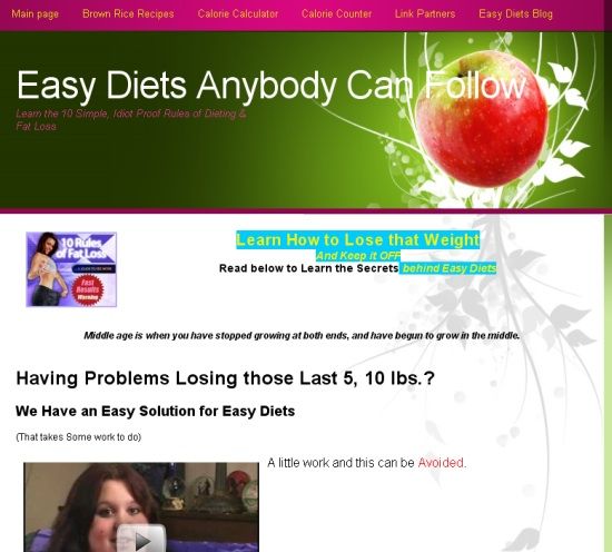 Конструктор сайтов предлагает на выбор 100 шаблонов и небольшой набор виджетов, таких как гостевая книга, карты Земли и реклама Google. Когда вы впервые присоединяетесь, вы можете выбрать, хотите ли вы, чтобы ваш сайт был отформатирован как информационный бюллетень продаж, страница контента или блог. Хотя на это может потребоваться немного творческого подхода, безусловно, с помощью BlinkWeb можно создать довольно приличную веб-страницу, например, веб-сайт для диеты, представленный ниже.