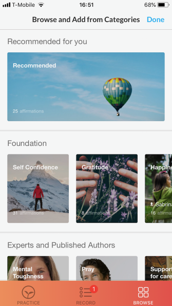 , Вы запишите себя, произнося утверждения, предложенные приложением или те, которые вы пишете сами. Слушайте их в течение пяти минут, по крайней мере, один раз в день, и вы будете на пути к усилению позитива.