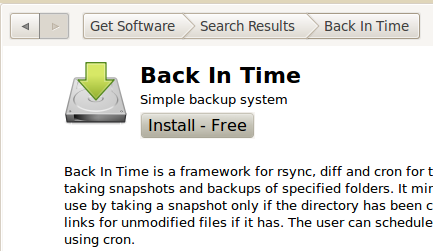 Он называется Back In Time, и это довольно полезная опция, если вы ищете решение для резервного копирования для вашего компьютера с Linux. В Ubuntu он доступен через Центр программного обеспечения Ubuntu, просто выполните поиск в прошлое, подождите, пока он не появится, затем нажмите кнопку установки. Вы также можете быстро выполнить sudo apt-get install backintime-gnome (или sudo apt-get install backintime-kde), если вы предпочитаете это делать.