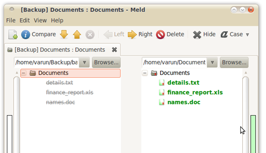Back In Time также позволяет вам увидеть, что изменилось после того, как был сделан определенный снимок, и текущее состояние файлов / папок.