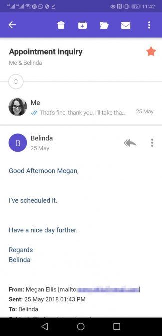 Скорость, безусловно, заметная особенность приложения, но также и его чистый дизайн. При просмотре электронной почты большинство ваших вариантов представлены в виде значков. Вы также можете использовать жесты для быстрой сортировки почты.