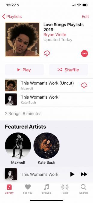 В следующем примере я создал плейлист под названием Love Songs 2019, который в настоящее время включает две песни: