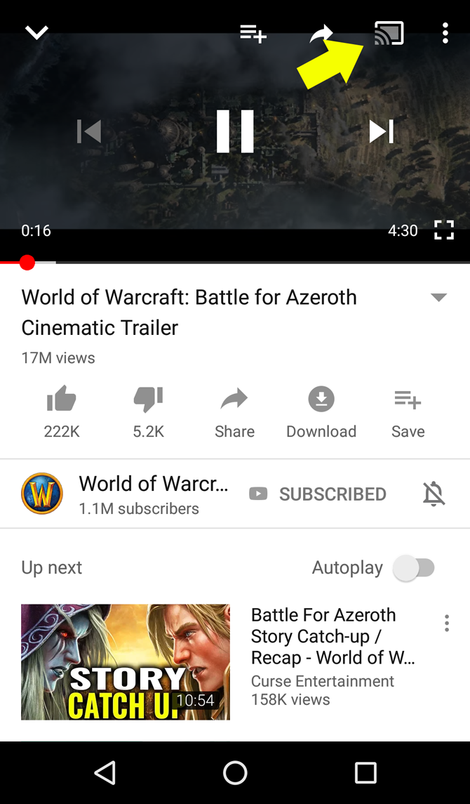 Затем нажмите на значок Chromecast и перейдите к доступной опции.