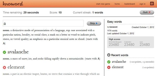 Увеличение вашего богатства слова — очевидный совет. Но в Интернете вы можете повеселиться со словами. Knoword — игра в угадайку, которая должна помочь обострить мозг и кончик языка. Тогда есть другие веселые игры в слова
