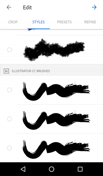 Вкладка «Стили» примет ваш собственный штрих и будет реализован с использованием стилей кисти Adobe по умолчанию. Эти стили напоминают кисти, карандаши и угольные кисти. Предустановки — самая мощная вкладка в апплете, позволяющая пользователям точно настраивать свои кисти, используя такие параметры, как Размер, Цвет и Повторяющийся узор.