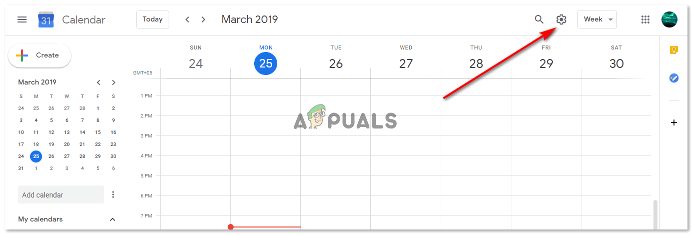 Нажмите на значок в виде сетки в правой части экрана, где вы найдете все продукты Google, которые вы можете использовать. - Вы будете перенаправлены в новое окно, в котором будет показан календарь для вашей учетной записи.