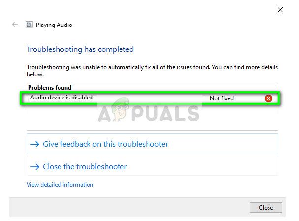 Это сообщение об ошибке может появиться, если вы вручную отключили устройство или из-за неправильной конфигурации аудиоустройство не может быть включено. Это очень известная проблема с быстрыми исправлениями. Посмотрите ниже.