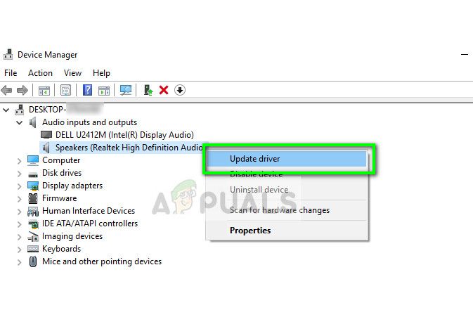 Также может быть проблема с вашими звуковыми драйверами, которые установлены неправильно или устарели. Они передают информацию на ваши динамики и практически работают ваши динамики и воспроизводят звук. Мы можем попытаться обновить их путем переустановки и проверки, если проблема будет решена. Если после перезагрузки компьютера проблема устранена, вы можете на этом остановиться. Если этого не произойдет, мы можем попробовать обновить драйверы дальше.