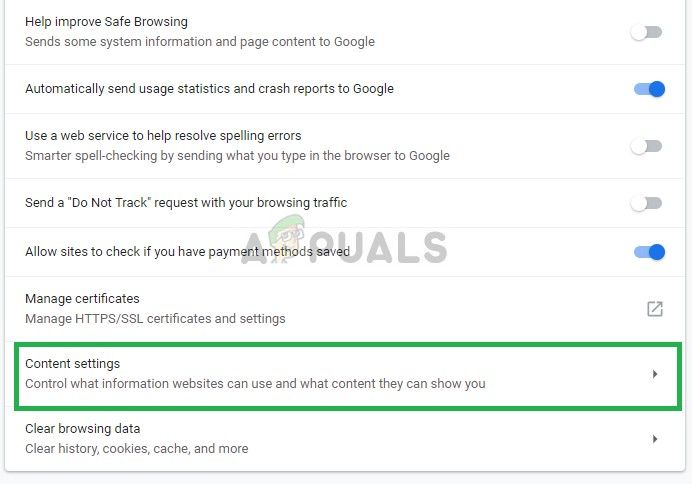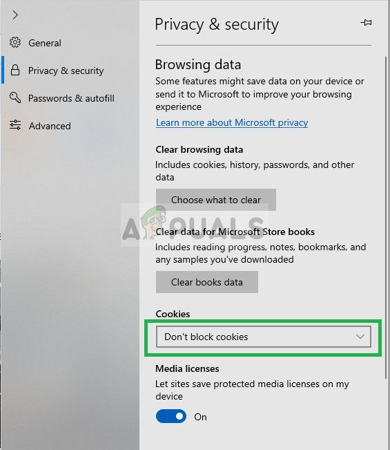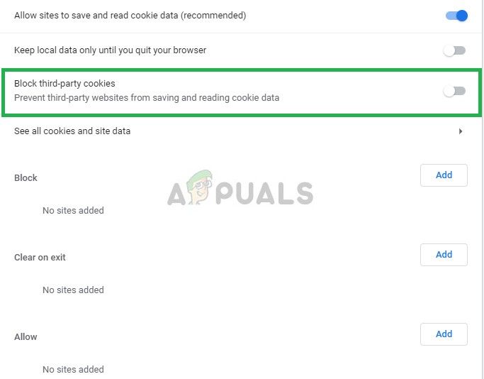 Иногда из-за ваших настроек конфиденциальности данные третьих лиц и файлы cookie не допускаются, что может привести к ошибке воспроизведения уровней M3U8, поэтому на этом шаге мы убедимся, что файлы cookie и данные третьих лиц разрешены в вашем браузере. Кроме того, этот шаг может отличаться от браузера к браузеру.