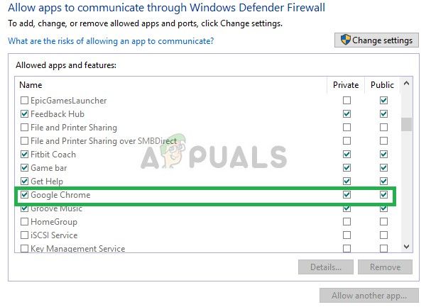 Иногда брандмауэр может блокировать доступ определенных элементов вашего браузера к Интернету, что может привести к ошибке, чтобы обойти