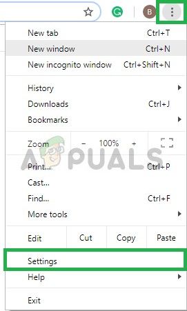 - Открыть свой браузер, щелчок на трех точках в верхней правый угол и нажмите на настройки