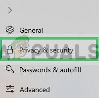 - Теперь в левой панели выберите Конфиденциальность и безопасность настройки