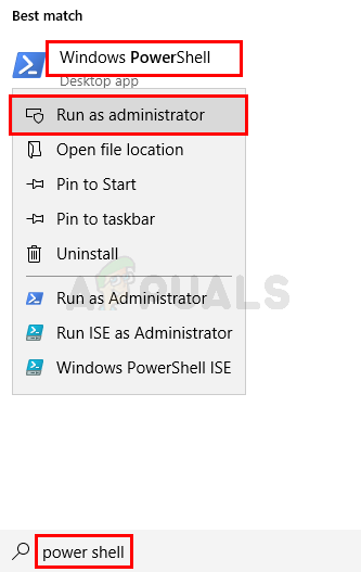 - Щелкните правой кнопкой мыши Windows PowerShell. из результатов поиска и выберите Запустить от имени администратора
