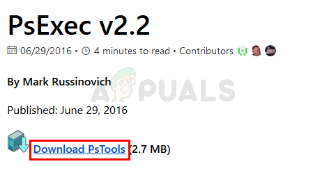 - Нажмите Вот и скачать пакет PsTools. Просто нажмите Скачать PsTools ссылка с сайта