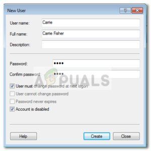 - в Новый пользователь, в окне введите имя пользователя и другие дополнительные учетные данные и нажмите Создать кнопку.