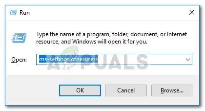 - Нажмите Windows ключ + R чтобы открыть окно запуска. Затем введите «мс-настройка: otherusersИ ударил Войти открыть семья вкладка «другие люди» из учетная запись Настройки.