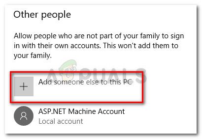 - в семья другие люди окно, нажмите на Добавить кого-то еще на этот компьютер (под Другие люди).