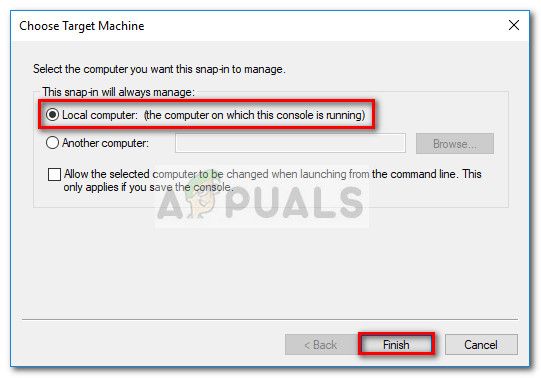 - в Выберите целевую машину окно, выберите Локальный компьютер и ударил Конец кнопка.