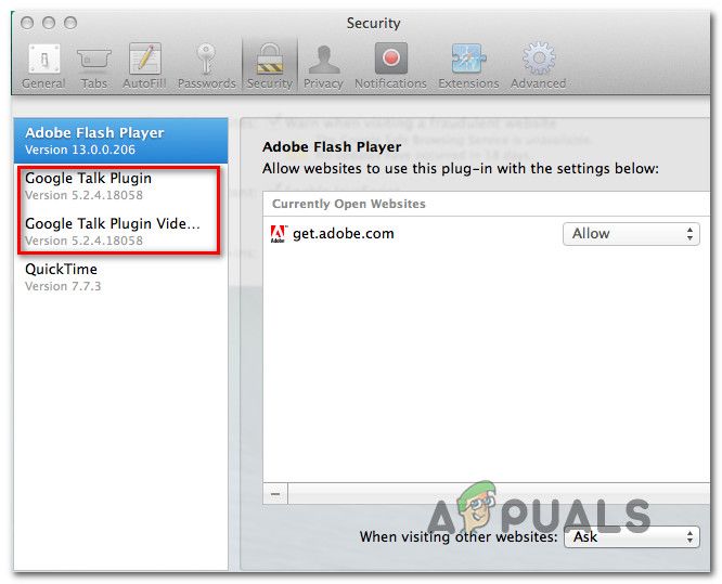 Затем прокрутите список плагинов и найдите плагин Hangouts. Как только вы увидите это, установите переключатели, связанные с Плагин Google Talk а также Плагин Google Talk Video Renderer для включения (или разрешения).
