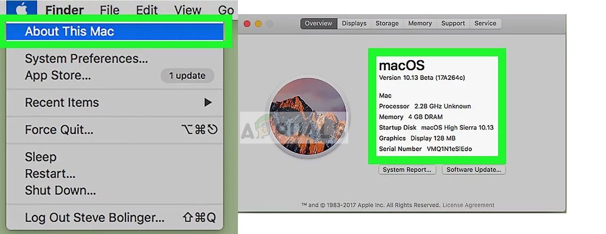- Нажми на Кнопка Применить в верхней левой части экрана и выберите Об этом Mac. В следующем окне будет отображена вся общая информация.
